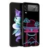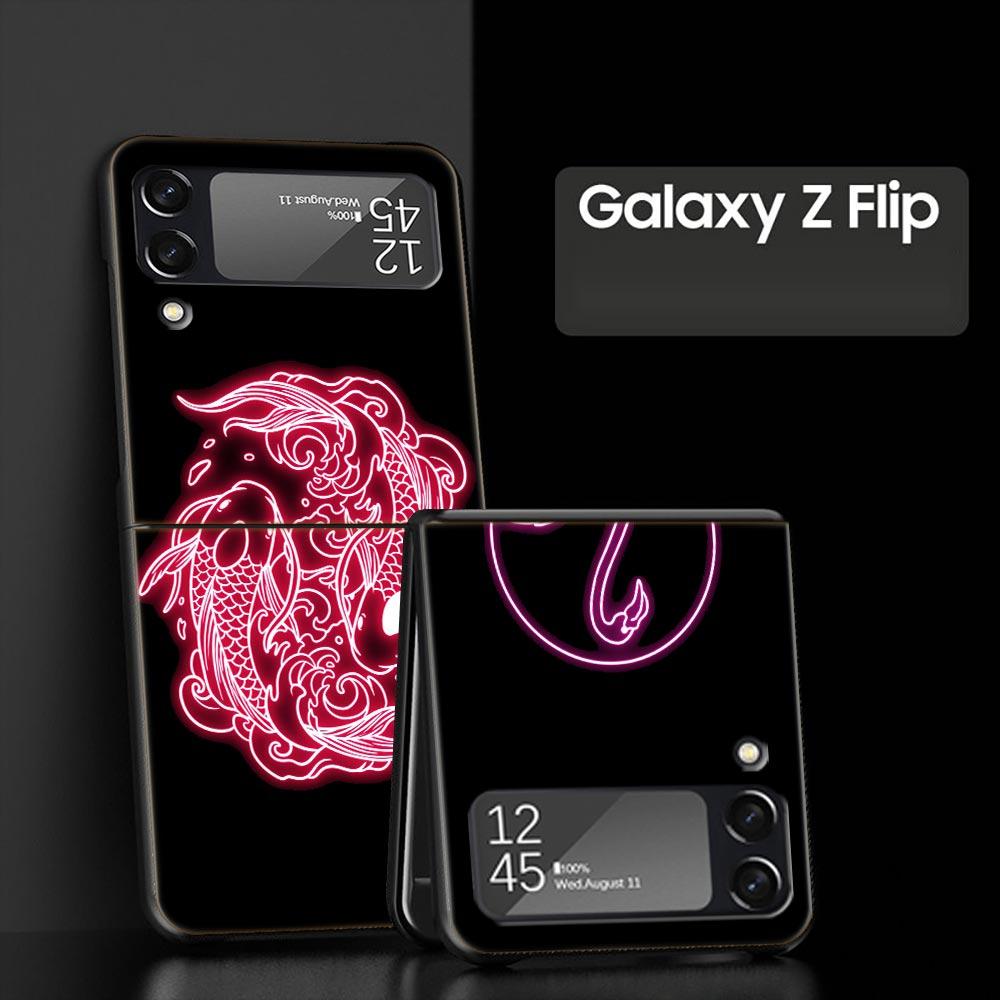 Phone Case for Samsung Galaxy Z Flip 3 4 5 Folding Mobile Shell Hard PC Fundas Capa Protect Cover Flamingo Neon Flower Wave Art