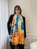 Simple Gradient Colour Oil Painting Ladies Air-conditioning Room Shawl Liqin Satin Silk Scarf