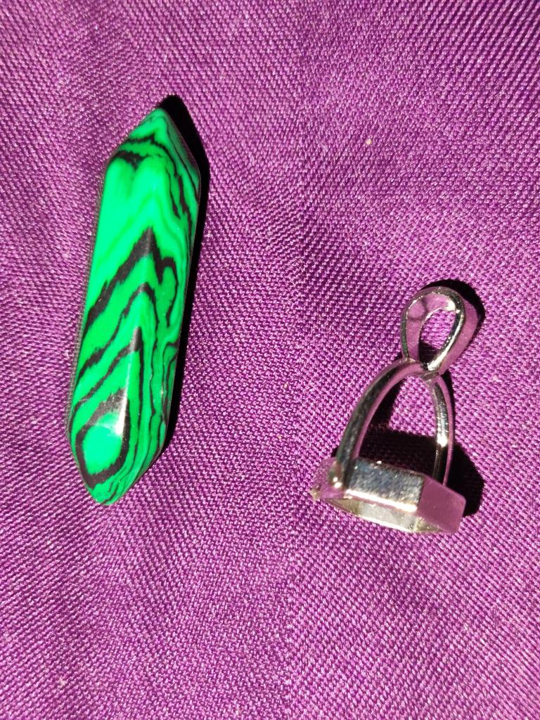 the stone is not pure green, but has purple spots