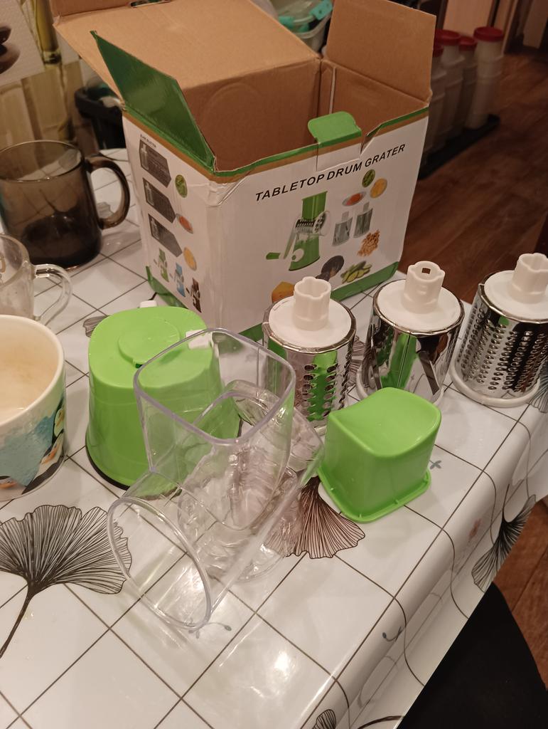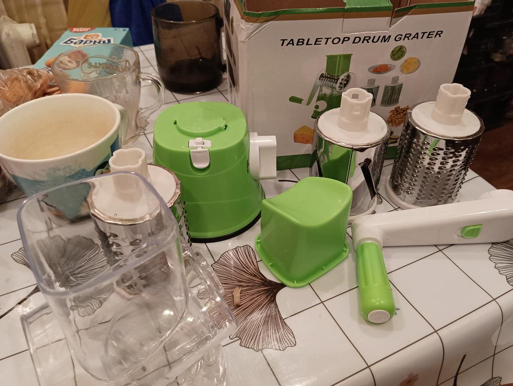 Everything as stated in the catalog. Very convenient. However, the fasteners cause concern (plastic bushings), are they durable. The grater blades are sharp.