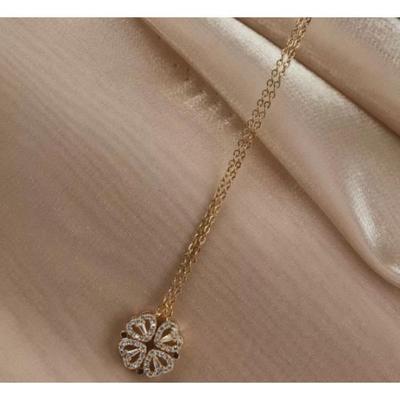 Women's Necklace Four-Leaf Clover Heart Pendant Gold Plated Stainless Steel