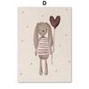 1Pcs Rabbits Wall Art Canvas Painting Interior Paintings Children's Bedroom Home Decor Bears Balloons Cute Animals Living Room No Frame