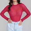 GMXIA Cut-out Knit Sweater Spring and Summer Sexy Slim Wool Round Neck Long-sleeved Thin Pit-stripe Knit Sweater