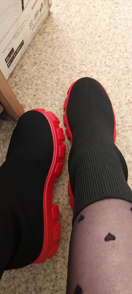 Everything is super! I ordered black with red for the costume, they arrived earlier, even though they were ordered later. But! They run really small! For a 40, I ordered a 42 and they fit just right over tights. Now I'm in doubt. I don't want to return them, because they are very cool and, if I keep them, I won't wear them much, because they fit snugly.