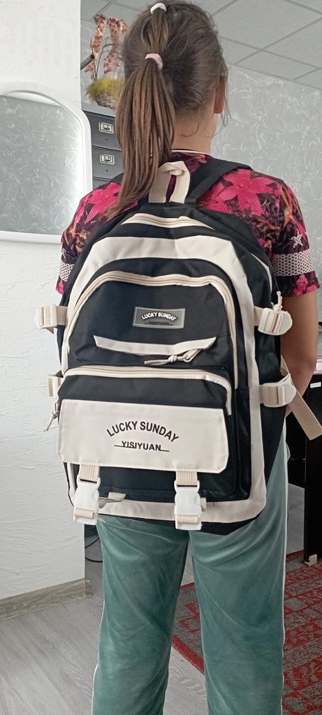 Everything matches, the size is normal, not orthopedic, but it will do for variety. The zippers are good, there are many pockets and compartments.