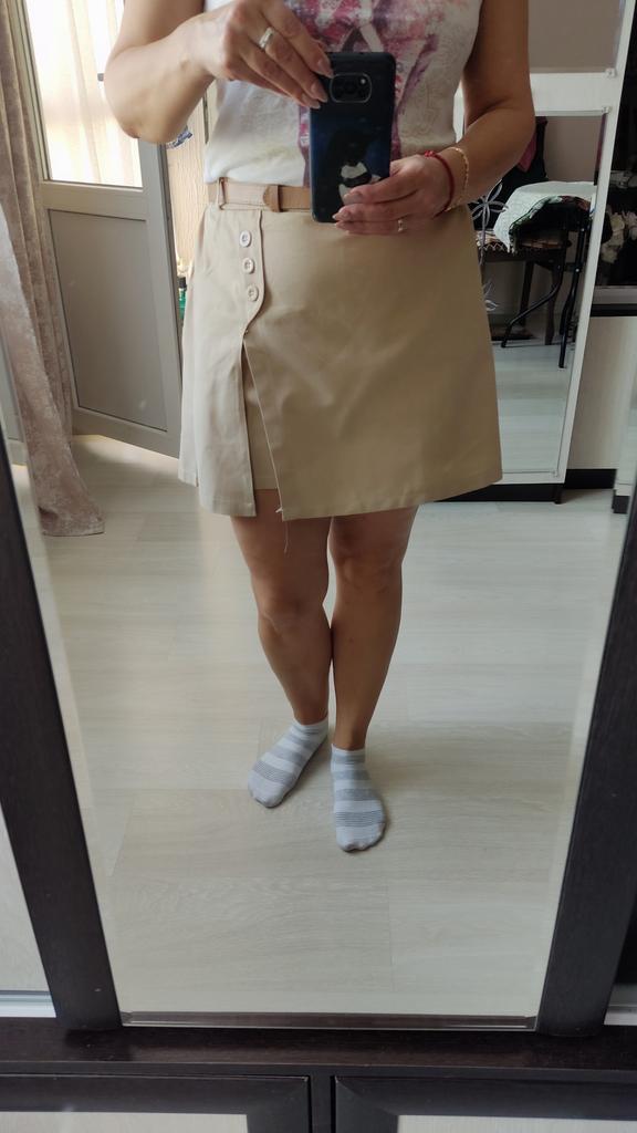 I've wanted a skirt shorts for a long time, bought it. OB-107, OT-90, wide in the waist, good in the hips. The fabric is thin, the quality is different from the photo.
