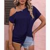 Summer New Single Shoulder Short Sleeve T-shirt Women Tops Elegant Solid Plus Size Casual T Shirt Woman Solid Simple Loose Office Lady Tee 24531