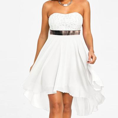 Women Party Full Dress Off Shoulder Waist Chiffon Bandeau Irregular Dress