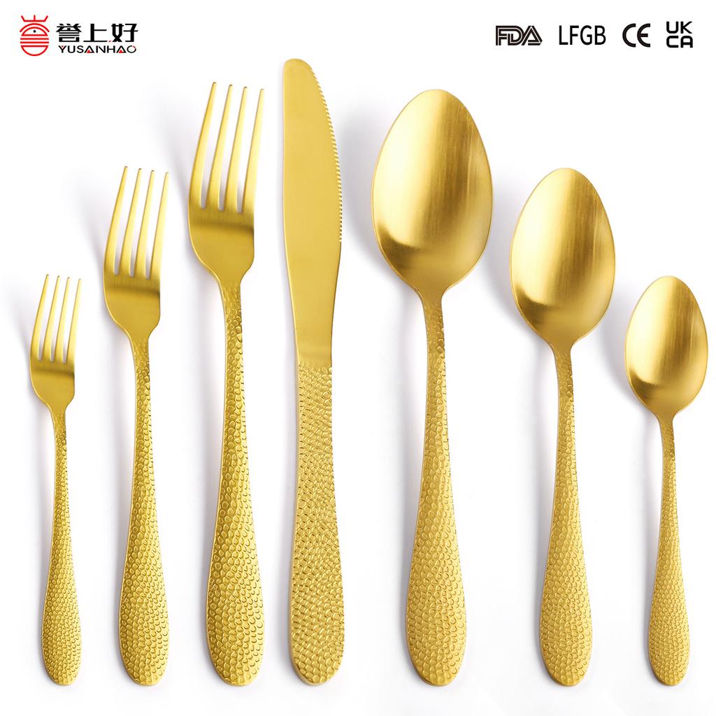 Hammer Matte Tableware Four-piece Set Stainless Steel Knife and Fork Spoon Steak Golden Dessert Spoon YSH-12-5PS