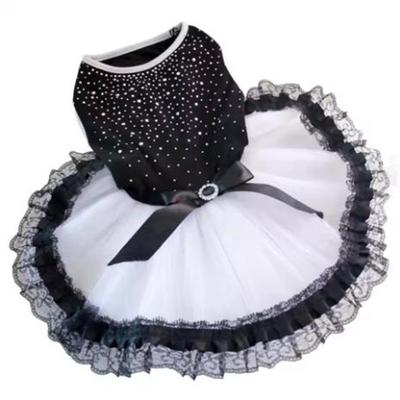 Black-white Glitter Bow Lace Dog Skirt Formal Diamond Dog Skirts with Lace Trim Pet Wedding Dresses Chihuahua