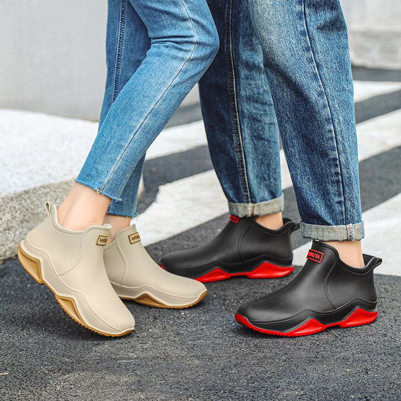 Women's Rain Galoshes PVC Insulated Rubber Shoes Waterproof Work Rainboots Fashion Solid Color Non-slip Garden Boots