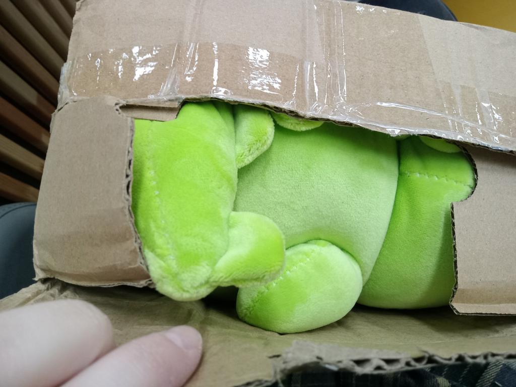 This toy comes completely flat packed in a vacuum bag. So it will be squeezed when you open it. Please do not worry it takes 1-2 days to return to its original shape. Or you can wash it in the washing machine. Then dry it in the sun so that it will soon return to its original shape.