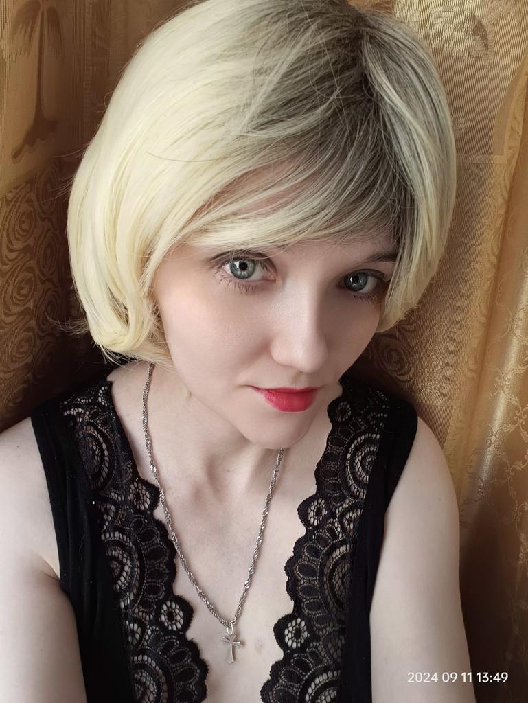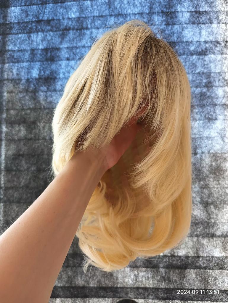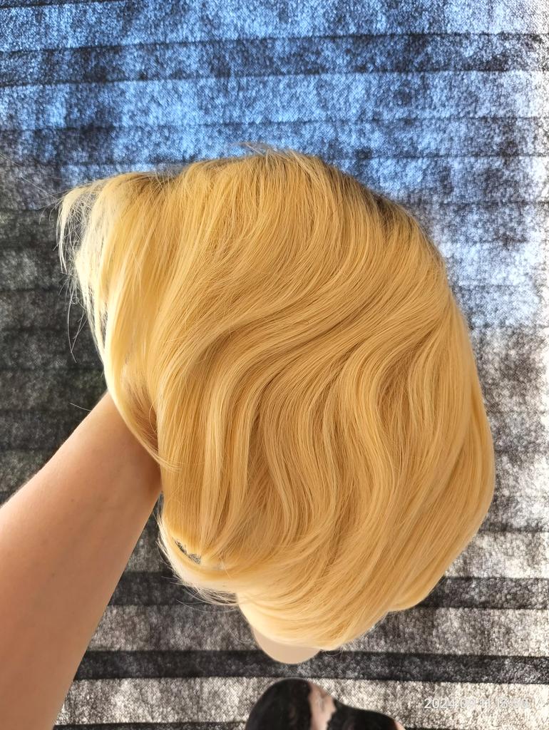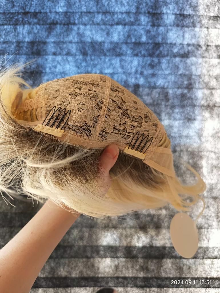 MISS WIG Synthetic Short Synthetic Natural Straight Hair Wigs Dark Roots White Blonde Wig For Women Daily Heat Resistant Fiber