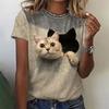 Fashion Women's T-shirts 3D Kawaii Cat Print Short-sleeved Personality Tops Casual Funny Tees Female Oversized Loose Clothing