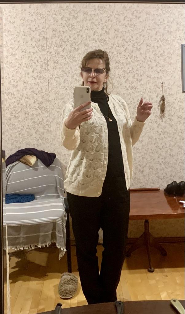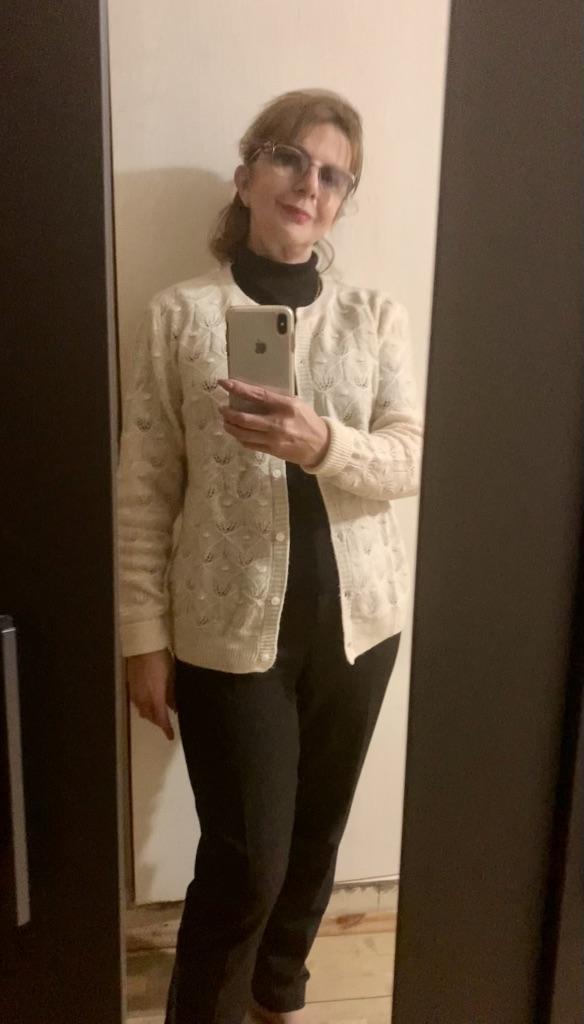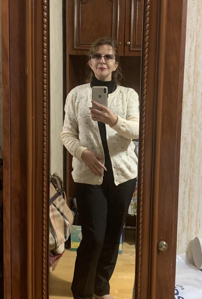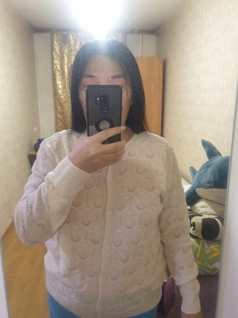Wonderful blouse, fits loosely, wanted for myself, but ended up for my mother (size 50-52), light, warm. Thank you.
