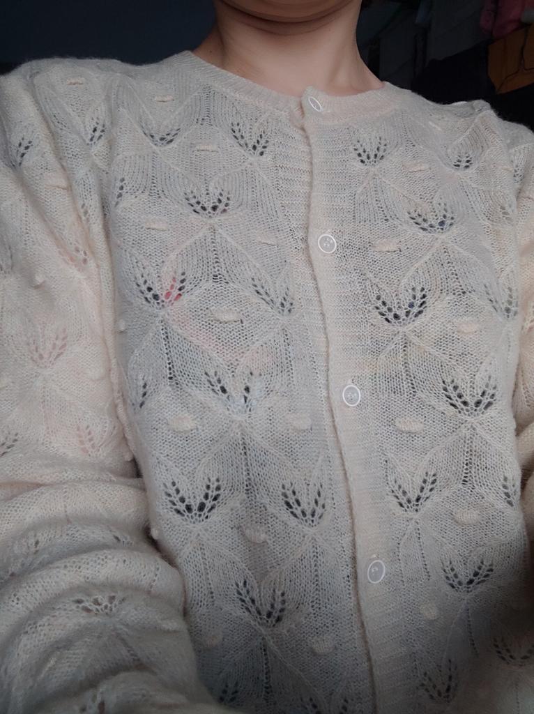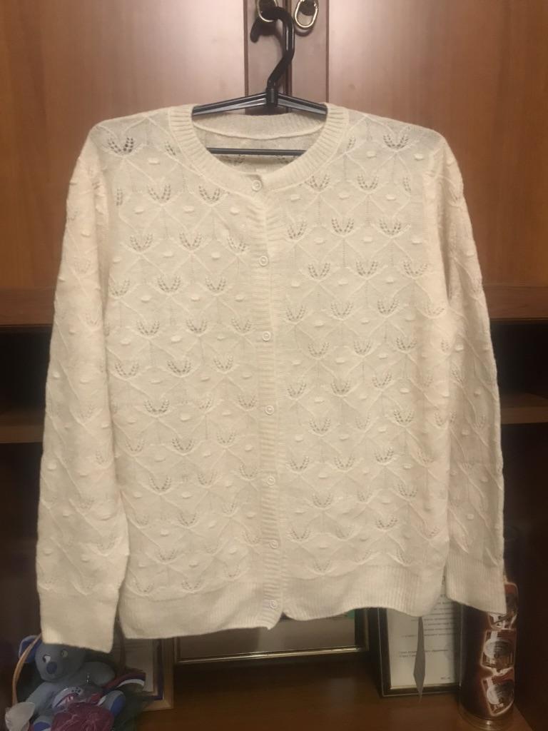 Delicate openwork cardigan for size 48 fits xxl loosely. I recommend