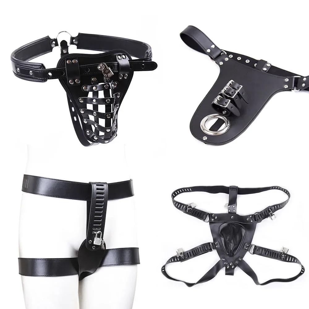 BDSM PU Leather Male Chastity Belt Device Pants Underwear Lock Penis Rings Bondage Erotic Sex Toys for Men Women 18+ Adult Games