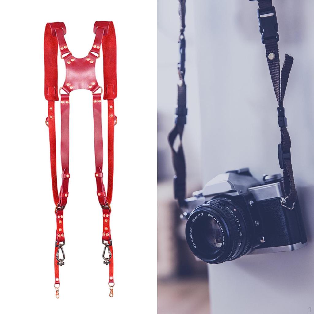 - 【Convinent Design】: The back of the strap features convinent design that evenly distributes weight on both sides. Holds two cameras near your hips.