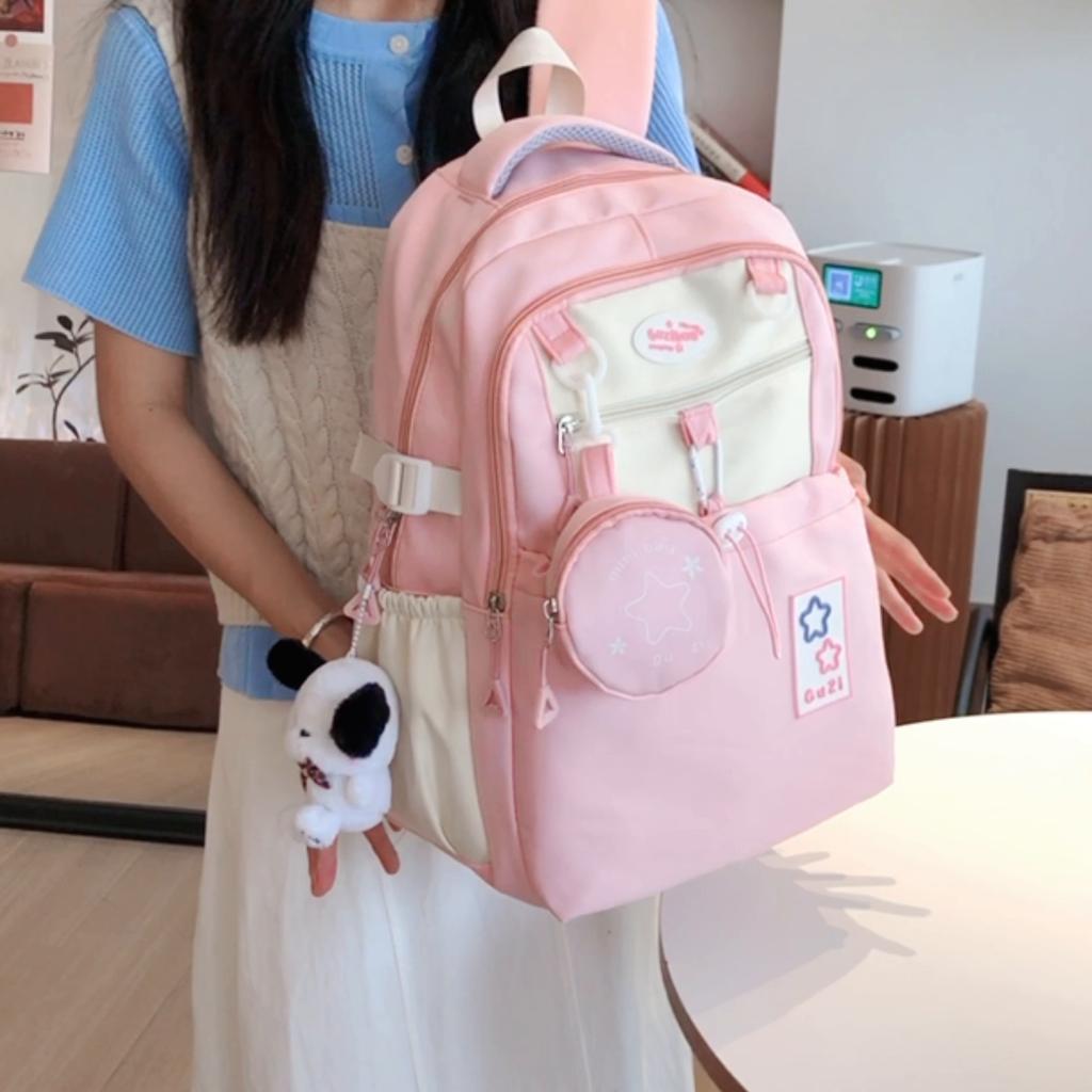 Color Block Women's Backpack Middle School Student Schoolbag Star Large Capacity Backpack