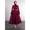 Spanish Satin Hijab Evening Dress With Wrapped Sleeve Waist