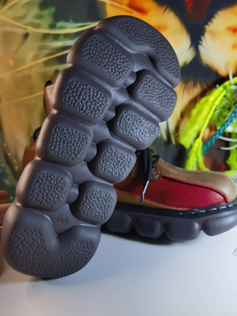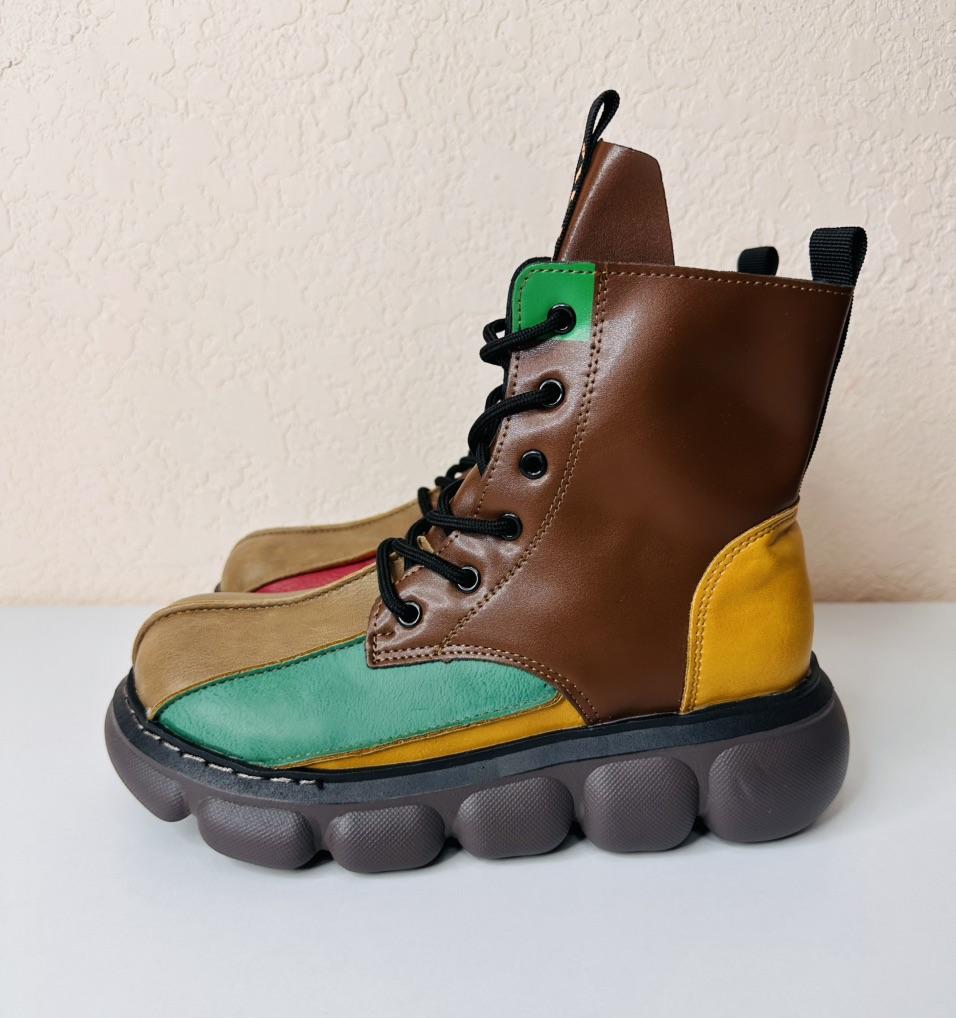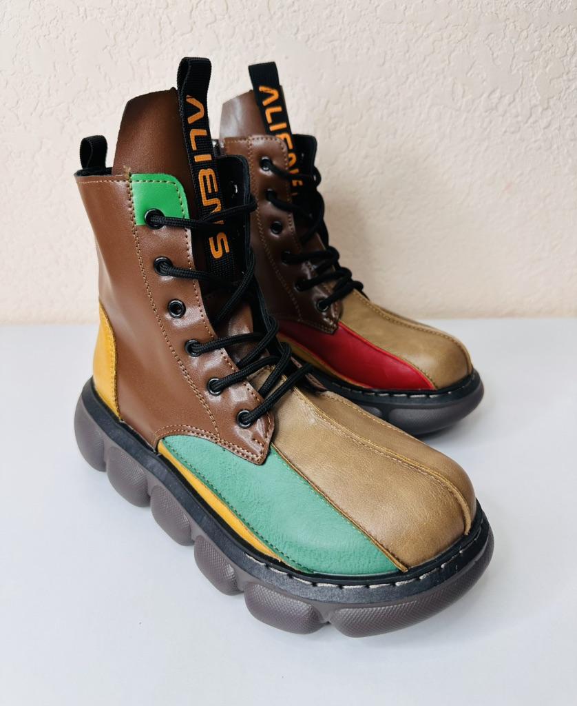 Autumn New Women's Short Boots Lace-up Thick Sole Leather Fashionable Color Blocking Martin Boots