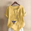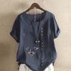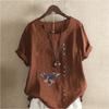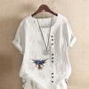 Women's New Fashion Linen Shirt Round Neck Short Sleeve Eagle Printed T-shirt Summer Ladies Casual Plus Size Blouse Tops