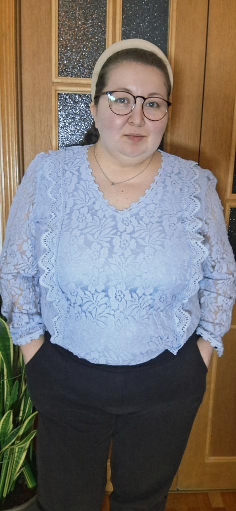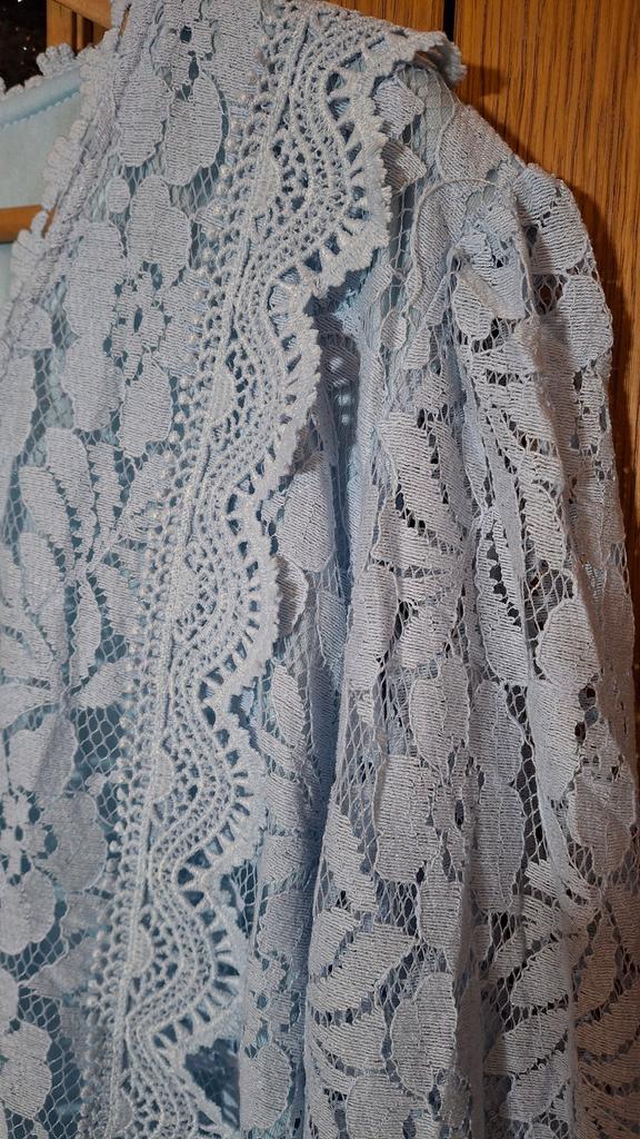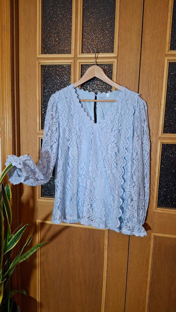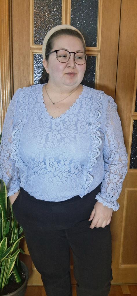 Blouse for women ✨ Long-sleeved blouse for spring/autumn. The sleeves are openwork, made of floral lace, so they are cool and perfect for transitional seasons. I ordered it in sky blue but the seller has several color options available and they are all very beautiful. The size corresponds to the measurements shown in the advertisement. It arrived in less than a month with a tracking number until delivery.