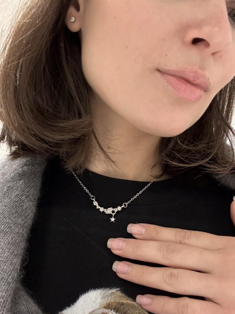 * Necklace with stars ✨ * 💥𝗟𝗶𝗲𝗳𝗲𝗿𝘇𝗲𝗶𝘁 About 2 weeks 💥𝗟𝗶𝗲𝗳𝗲𝗿𝘂𝗺𝗳𝗮𝗻𝗴 Included is 1 necklace in silver. 💥𝗤𝘂𝗮𝗹𝗶𝘁ä𝘁 The necklace makes a beautiful impression. There are small star-shaped stones on the chain, but there are no decorations on the back. The chain can be individually adjusted to be tighter or looser around the neck... (see video). For material composition : You can see that the necklace won't last forever, but for a nice fashion accessory to a beautiful dress is communion, it's totally okay. I think the chain was made of a simple metal. The trailer is relatively long and solid. 💥𝗙𝗮𝘇𝗶𝘁 Pretty necklace, which is a great eye-catcher for the décolleté 🦋 Sparkles beautifully in the sunlight.