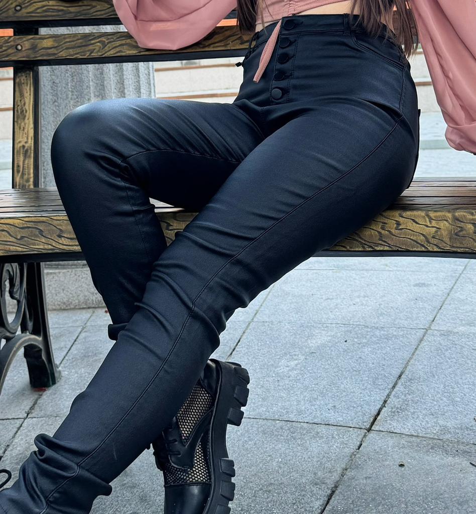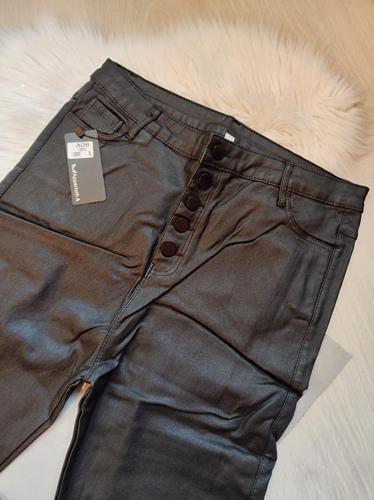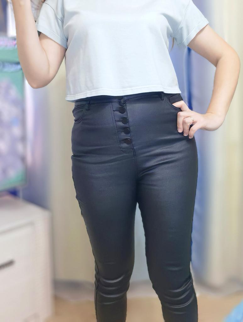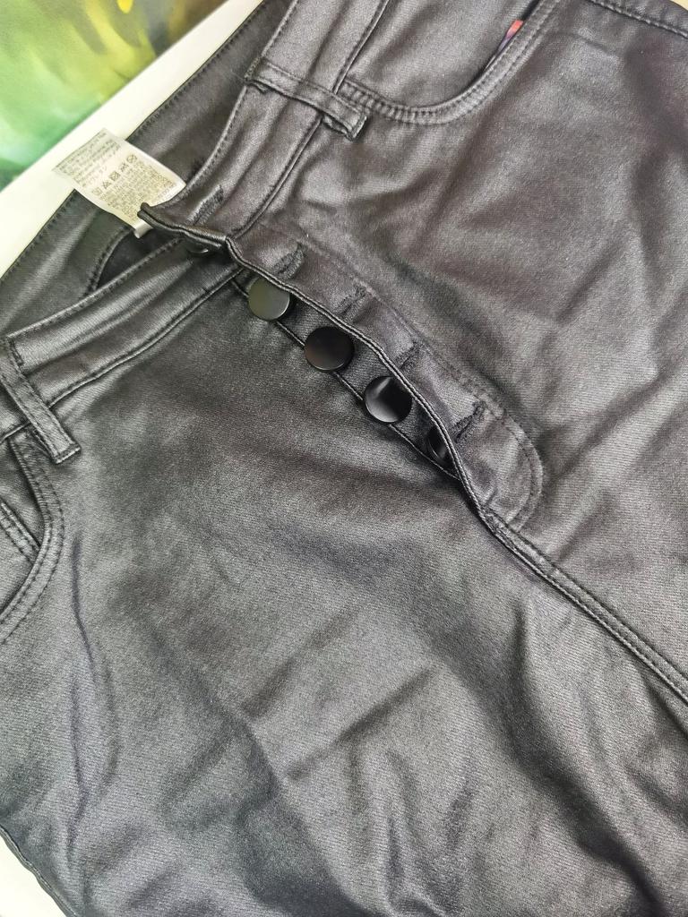 Plus Size Button Fly Thermal Lined Women's Sexy PU Black Leather Pants Leggings High-Stretch Cropped Daily Wear