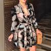 GMXIA Beach Holiday Dress Autumn and Winter Long Sleeve V-neck Lace-up Women's Short Fashion Sexy Dress
