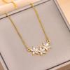 Trendy 18K Gold Plated Zircon Crystal Pendant Stainless Steel Necklace for Women Female Clavicle Chain Jewelry Lady Accessories