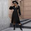 YYFS Women's Fashion Spring Fall Solid Color Print Long Sleeve V-Neck Middle Waistline Casual Dresses