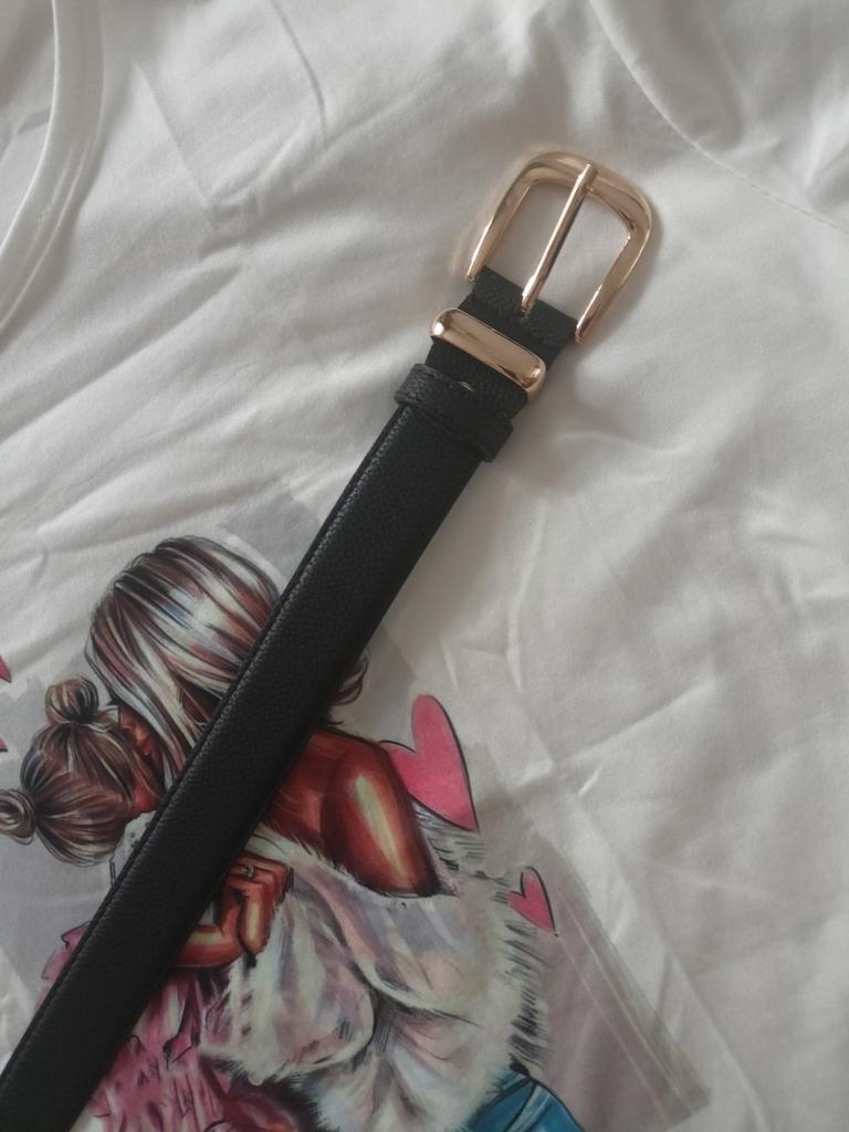 A white little belt, suitable for slim people, no need to make additional holes for fastening. Thank you, I like it. 👍