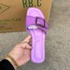 Fashion Buckle Decoration Women's Slippers 2024 Summer Flat Bottom Beach Casual Shoes Female Footwear Brand Design Soft Leather Slides