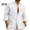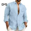 Fall Spring Men Shirt Button Turn-down Collar Long Sleeves Loose Plaid Applique with Chest Pocket Daily Wear Business Bottoming Top