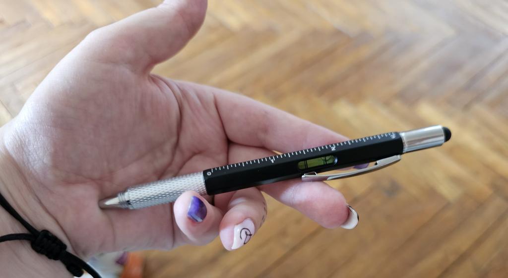 The handle is interesting: everything (screwdrivers, level, rod) functions.