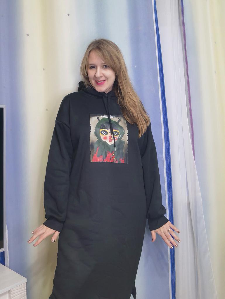 This dress is simply perfect for the autumn and winter season. It is thick, lined, and feels very comfortable on the body. The loose fit sits comfortably and is not too tight, making it ideal even for larger sizes. It is not only comfortable – it is also very flattering and exudes a casual and stylish look.. The cartoon print adds a playful and cute touch, and the hood adds a sense of warmth as well as a young and up-to-date style. I love the Korean-Japanese style of the dress, which gives it a unique and unconventional look – it stands out among regular clothes, but in a pleasant and not exaggerated way.. I've worn it several times already – both at home and for short outings – and it feels great every time. Even after washing, it stays soft and looks good, as long as you take care to hand wash it as recommended. In short – a high-quality, warm, and beautifully designed dress. Highly recommended!