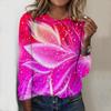 Tops For Women 3D Glowing Flower Print Round Neck Long Sleeve T-shirt Fall Casual Slim Pullover Women's Long Sleeve Top
