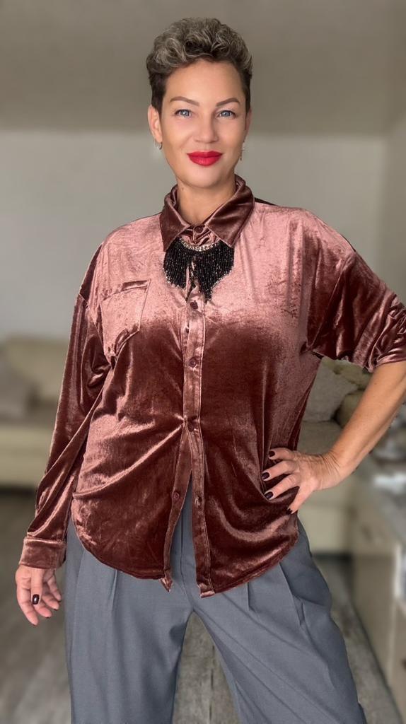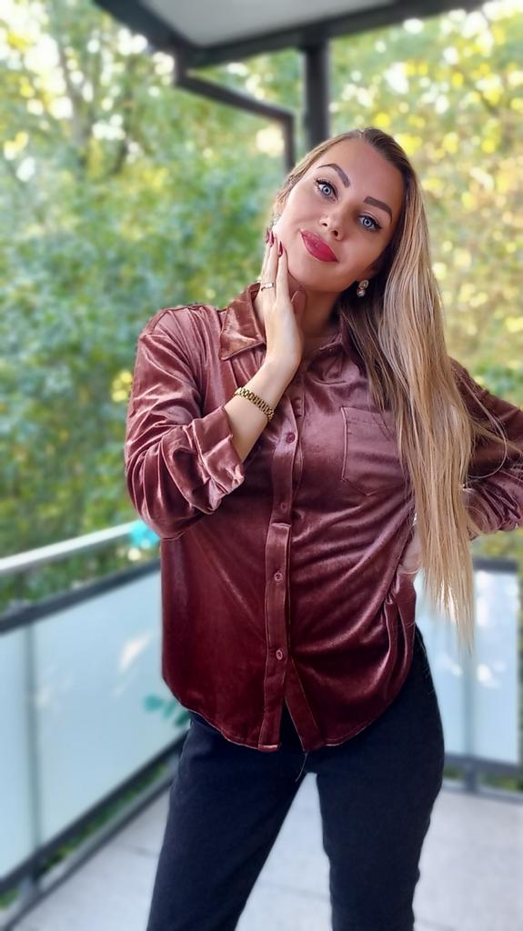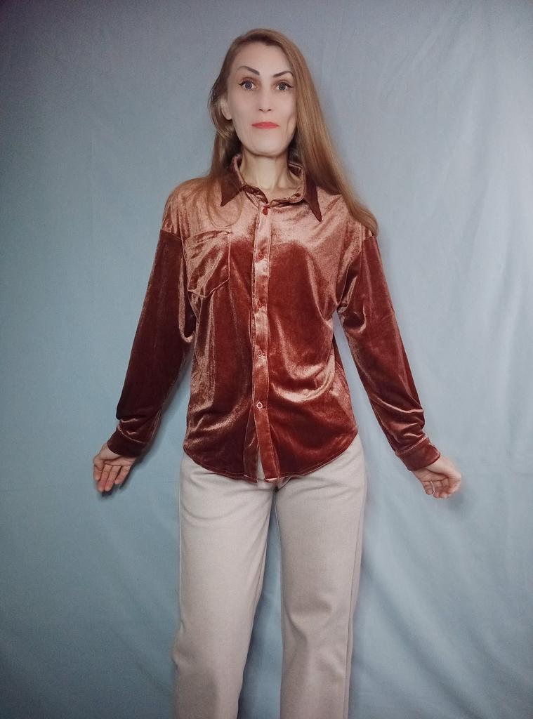 Women's Fashionable Loose Golden Velvet Solid Color Casual Long Sleeve Shirt 1. made of high-quality material, the fabric is very comfortable and suitable for daily wear. 2. very cool and suitable for dates, parties, everyday, work, and holiday wear. It can be easily combined with tank tops, shirts, dresses, trousers, jeans, and boots for a practical everyday look. 3. The special design makes you more sexy, allows you to look elegant in this casual shirt. 5. Suitable for any occasion you like I chose size S. On my parameters OG -85 cm FROM -69 cm Height -165 cm Fit perfectly. I recommend.👍👍👍