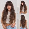 Wigs, Qi Bangs Big Waves Long Curly Hair Gradual Change Brown High Temperature Silk Chemical Fiber Wig Headgear
