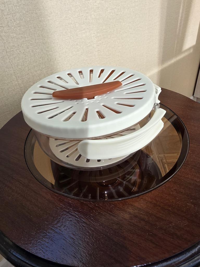 The vegetable washing basket's lid incorporates a clever hollow mesh and knob mechanism for effortless washing and draining of fruits and vegetables. Enhance your food preparation process with this user-friendly feature.