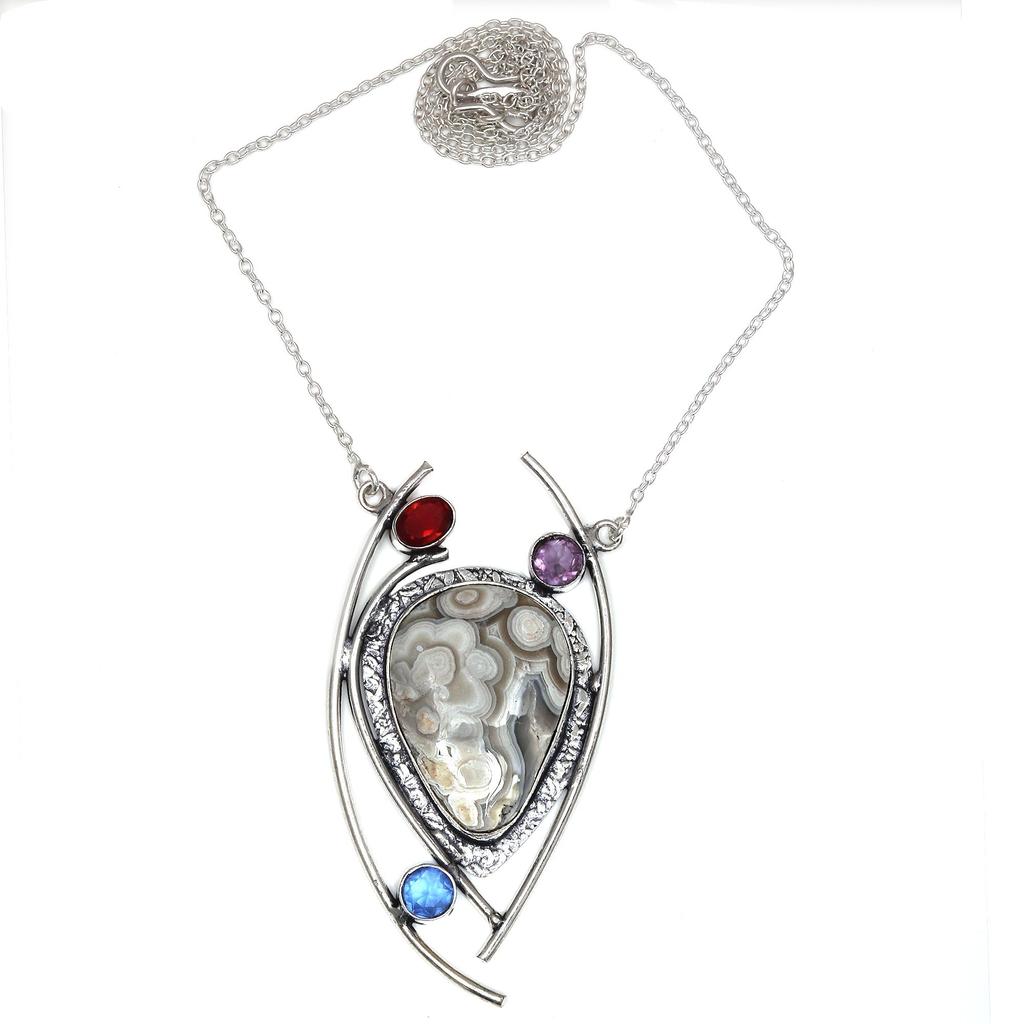 Crazy Lace Necklace Agate Gemstone Pendant Silver Natural Jewelry Jewelry