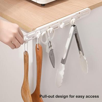 Wall Hook Expandable Design Easy Access No Drilling Adjustable Pot Racks Pan Utility Organizer Sliding Pantry Organization Hook Kitchen Supplies