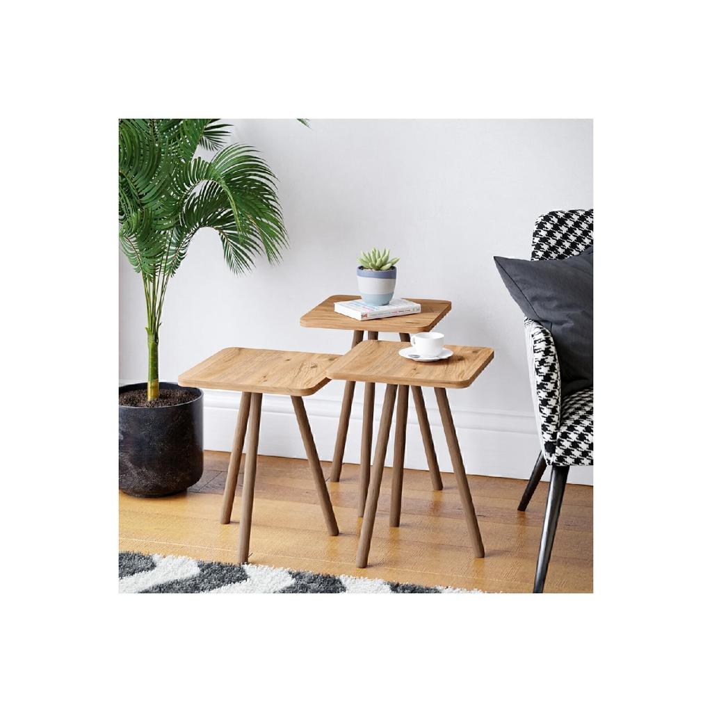 Triple Nesting Coffee Table Wooden Legs Square Design Pine Pattern