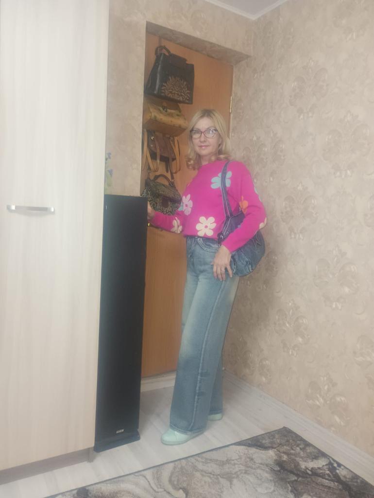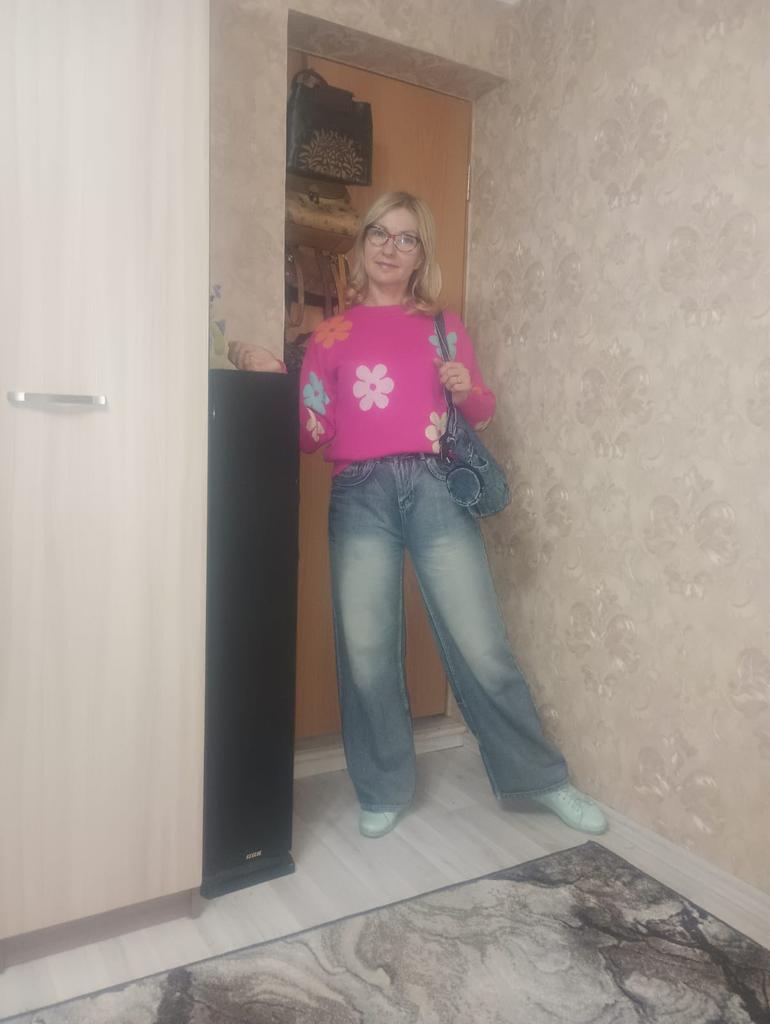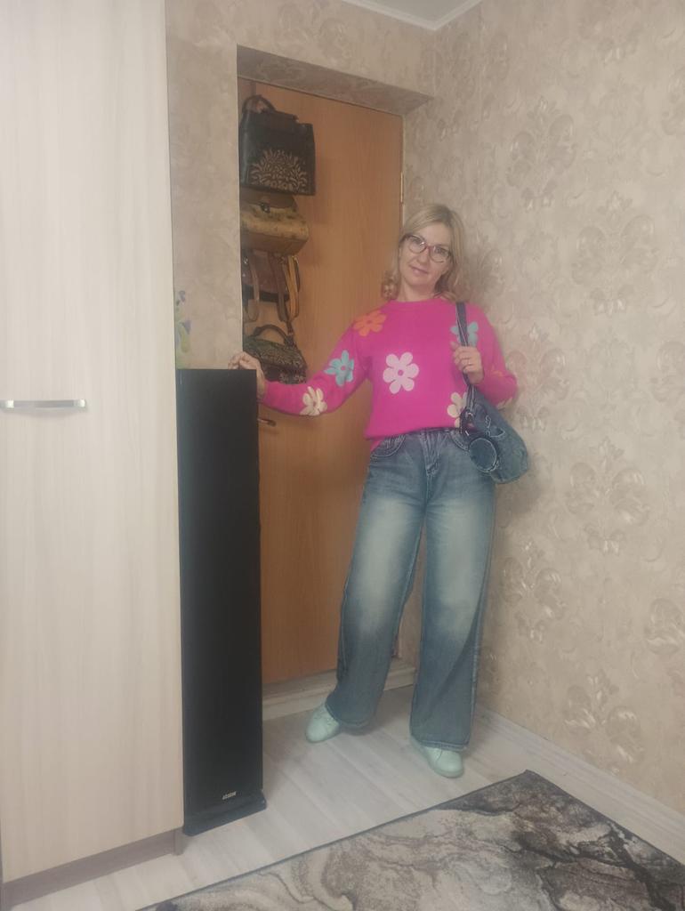 Autumn and Winter Women's Sweater Flower Colour Blocking Crew Neck Knitwear