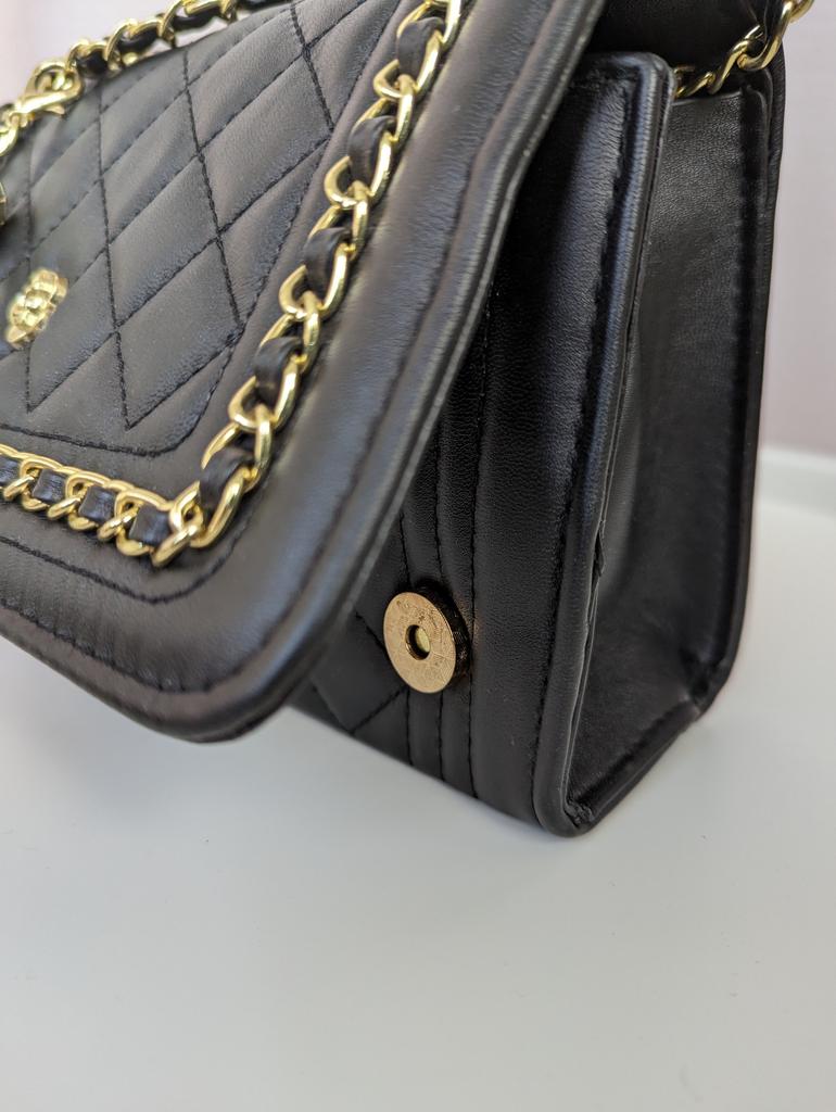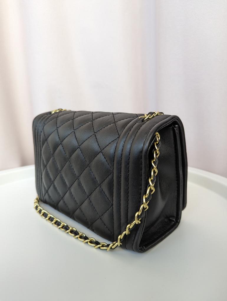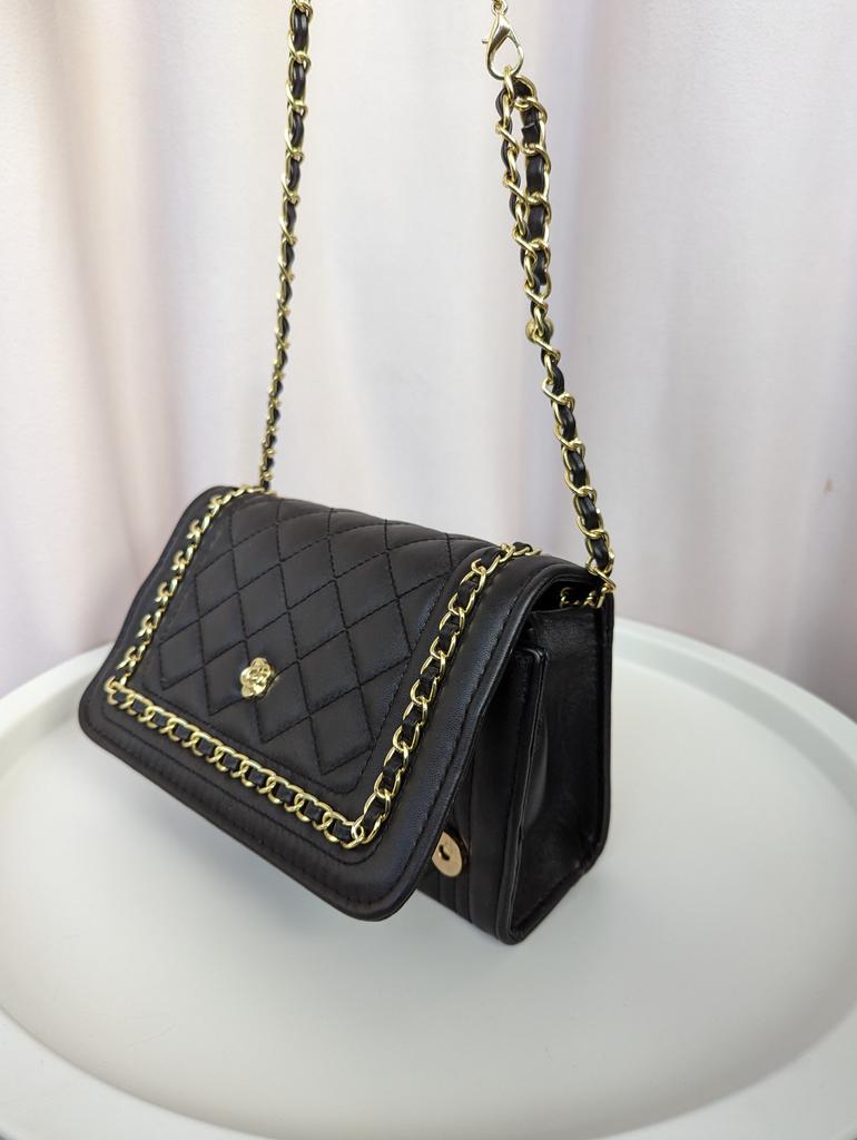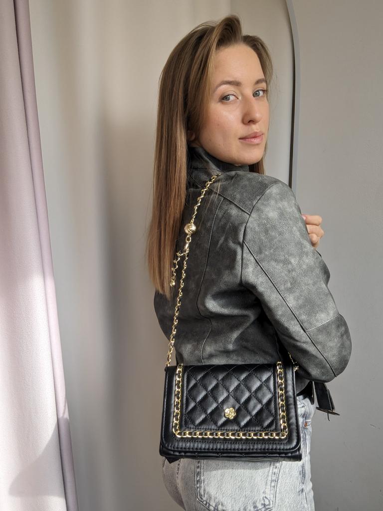 * Honeycomb handbag with flower emblem * 💥𝗟𝗶𝗲𝗳𝗲𝗿𝘇𝗲𝗶𝘁 1 month 💥𝗟𝗶𝗲𝗳𝗲𝗿𝘂𝗺𝗳𝗮𝗻𝗴 The delivery includes 1 handbag in the corresponding color and size. The handbag is available in one size in 10 different designs I ordered the handbag in black and gold. 💥𝗤𝘂𝗮𝗹𝗶𝘁ä𝘁 I really like the handbag, it is well made, there are no glue residues visible and the handbag also looks really good. It can be worn as a shoulder bag or diagonally across the chest... with a strap made of link chain elements. This shoulder strap could theoretically also be worn shorter, as it can only be adjusted with a snap hook. The handbag has a large compartment that can be opened and closed with a magnetic closure. Inside, the handbag is divided into 3 further compartments, one of which can also be closed with a zipper. I particularly like the brooch on the front... and of course the honeycomb look of the entire handbag, as well as the chain around the outside of the flap as decoration. For material composition : I polyurethane, but I didn't find a label. 💥𝗙𝗮𝘇𝗶𝘁 Mega beautiful handbag that can be combined with both a casual jeans outfit and an elegant dress. It enhances every outfit...👌