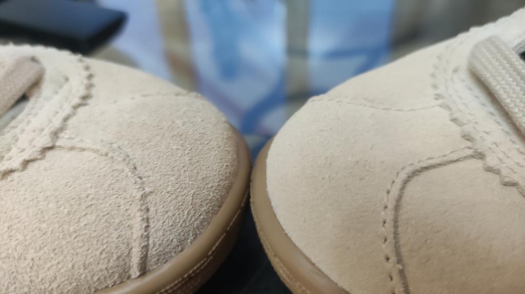 Size 38 fit perfectly for a foot of 23.5 cm. Soft suede, pleasant sand color. Textile insole, the tongue is lined with faux leather on the inside - as is the heel. The rest is textile lining.