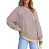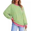 Women's Sports Casual Round Neck Long Sleeve Contrast Striped Sweatshirt Pullover Tunic Top T-Shirt