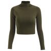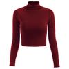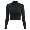 IHUASU Autumn and Winter Half High Neck Solid Colour Long Sleeve Knitted T-Shirt Slim Women's Navel Top