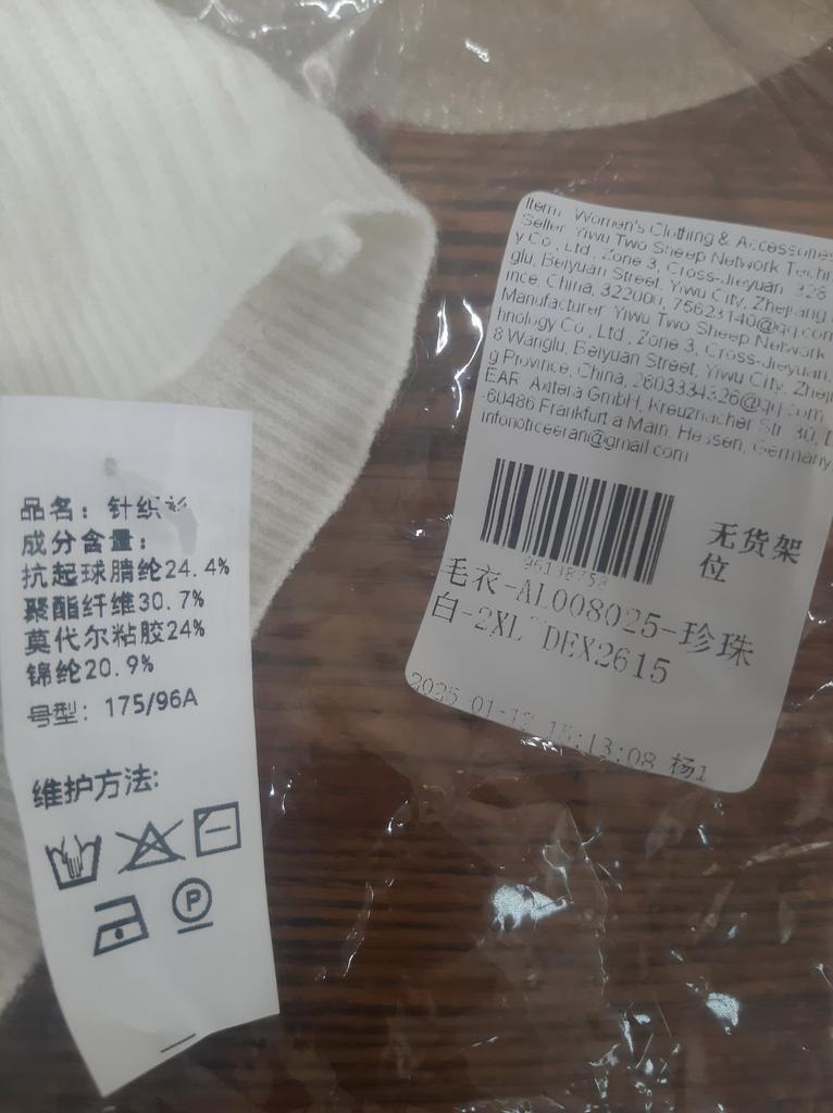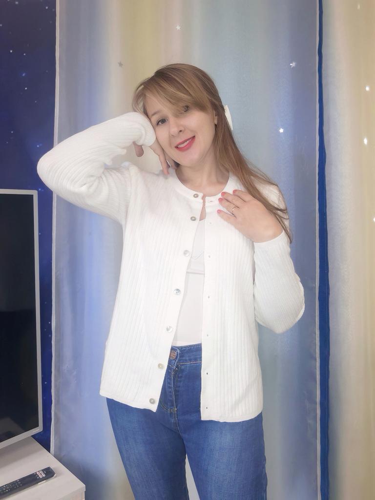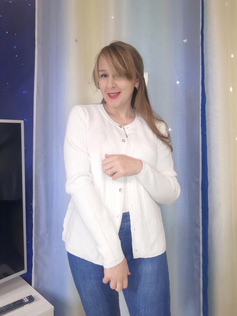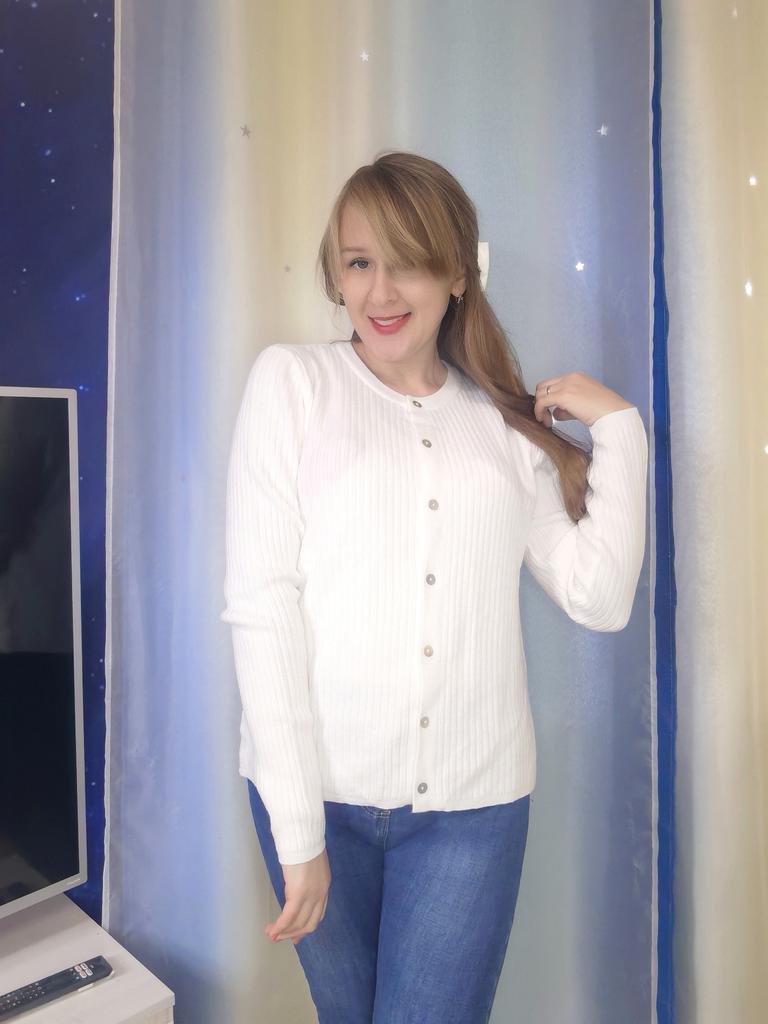 I ordered two sweaters of the same size, different colors. The green one is perfect, but the beige one is too big. The knitwear is thin, soft, ribbed, holds its shape. Good.